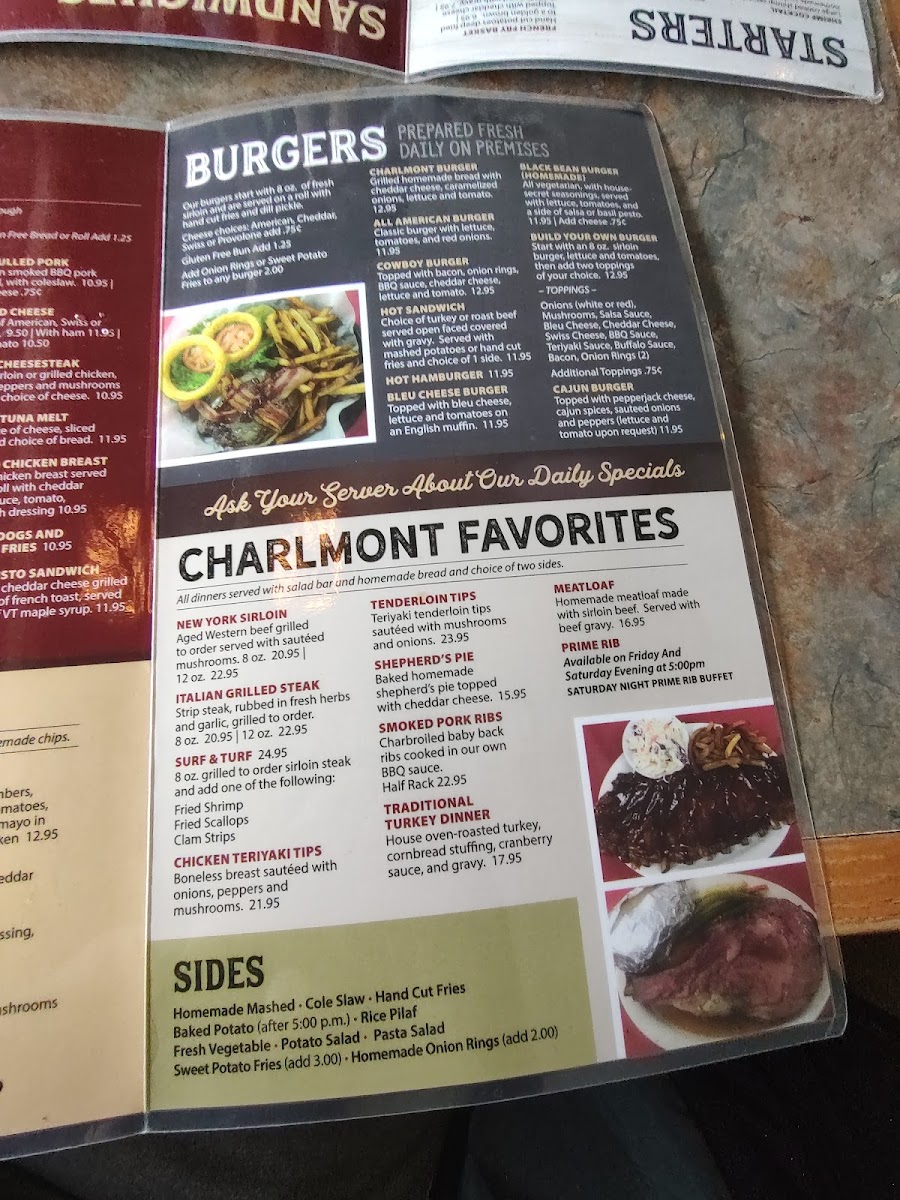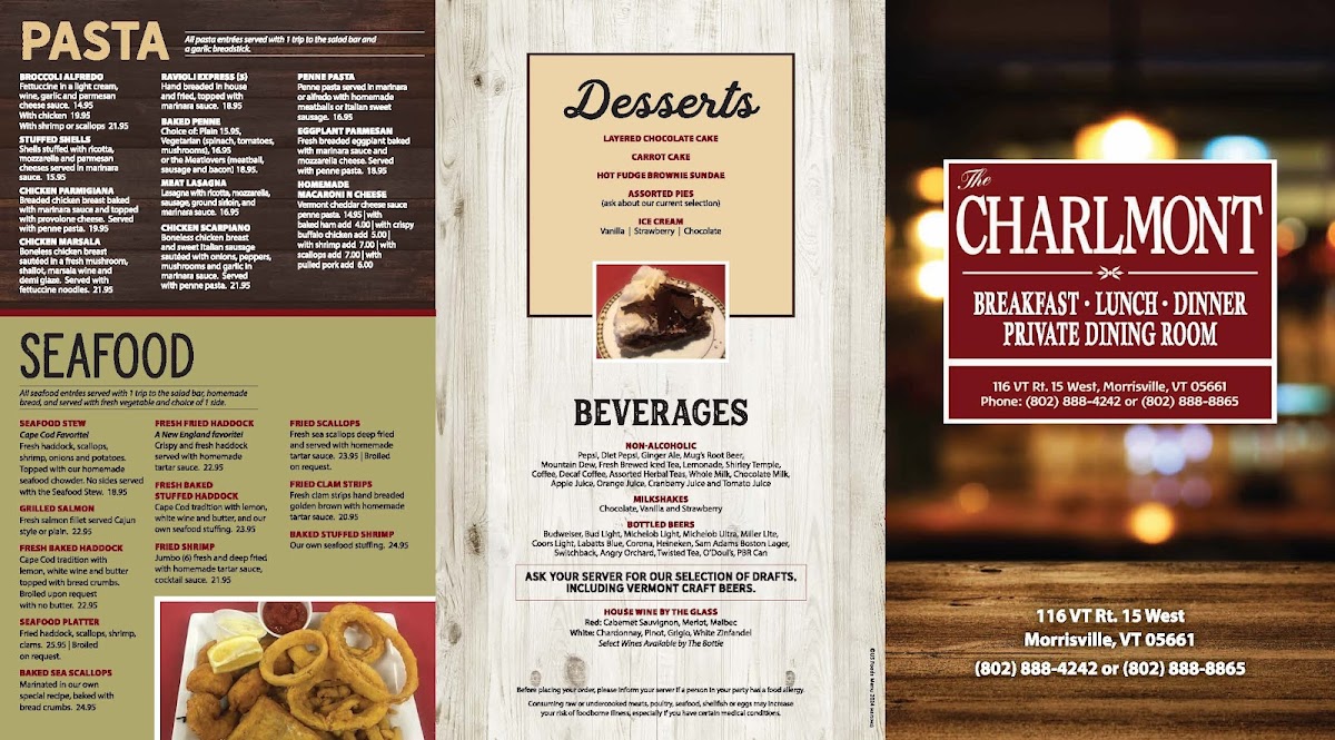 Welcome to Charlmont Restaurant, a culinary gem nestled in Morristown, VT. Known for its hearty and delightful comfort food, the menu is a celebration of local flavors. Diners rave about the renowned Vermonter and classic Reuben sandwiches, alongside perfectly grilled burgers that hit the spot after a long hike.